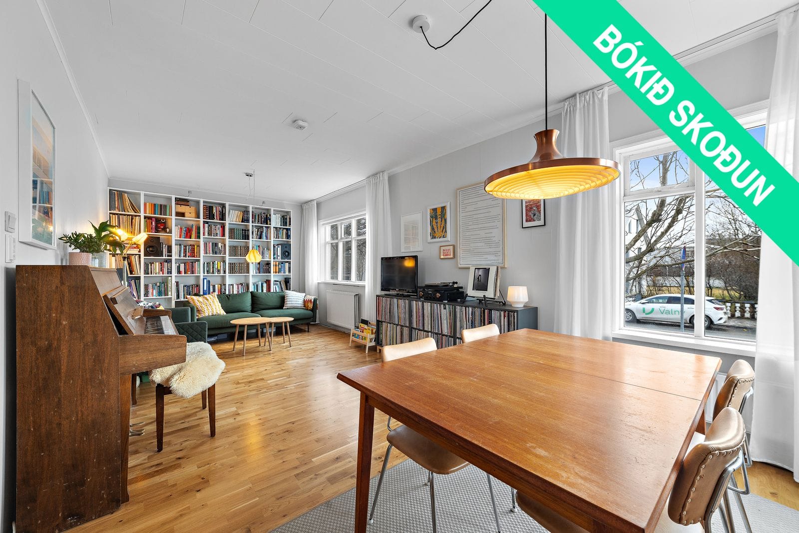 Laugarnesvegur 63, 105 ReykjavíkÍbúð á tveimur hæðum í tvíbýli með rúmgóðum bílskúr á vinsælum stað. Þrjú bílastæði tilheyra eigninni og fjórða er sameign. Um er að ræða rúmgóð stofa, eldhús, svefnherbergi, tvö baðherbergi og þvottahús.