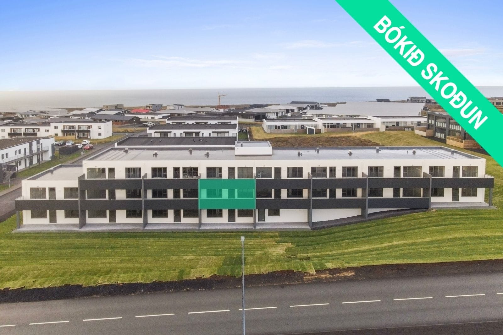 Lóð, aðkoma og sameign:Bílastæði eru malbikuð og stéttar hellulagðar að húsinu. Stéttar og stæði fatlaðra eru með snjóbræðslu og lóð er að öðru leyti með grasi. Samtals eru 31 malbikuð bílastæði á lóðinni, þar af tvö fyrir hreyfihamlaða. Lagnaleiðir fyrir rafhleðslustöðvar eru lagðar að stæðum. Flísalagt anddyri með póstkössum. Teppi á stigum og stigapöllum. Á jarðhæð/kjallara er sameign með máluðu gólfi,