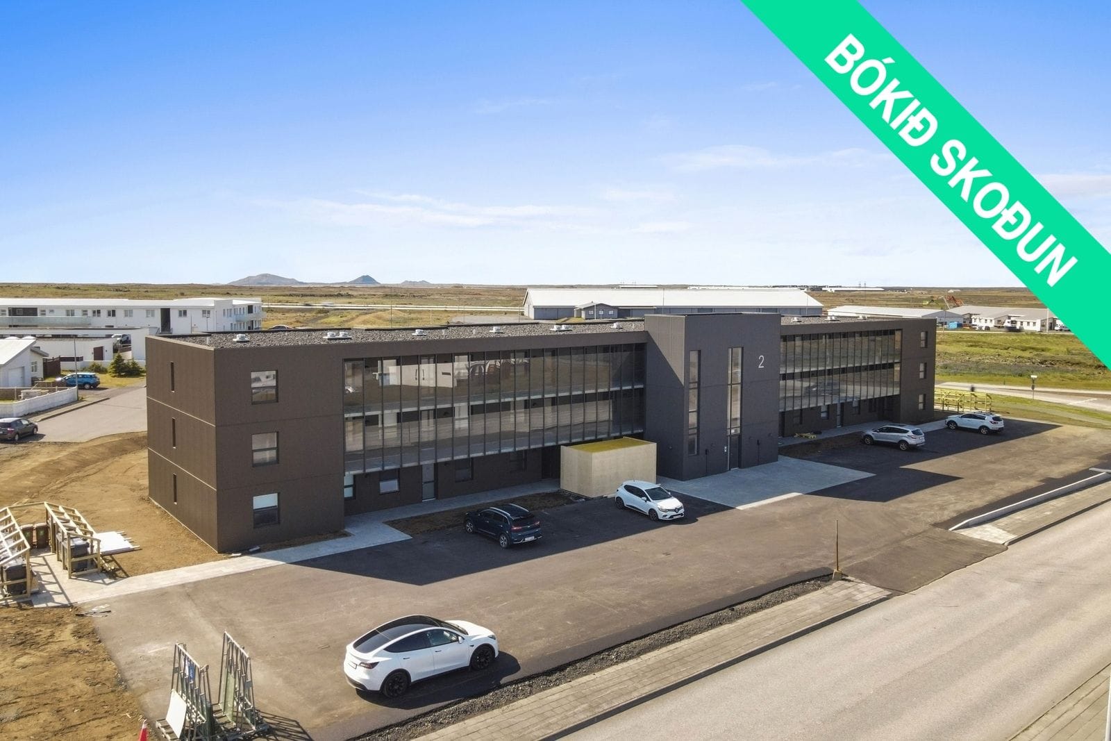Lóð og aðkoma:Bílastæði verða malbikuð. Stéttar við innganga eru hellulagðar og með snjóbræðslukerfi. Hjólaskýli er staðsett á lóðinni sem verður þökulögð.