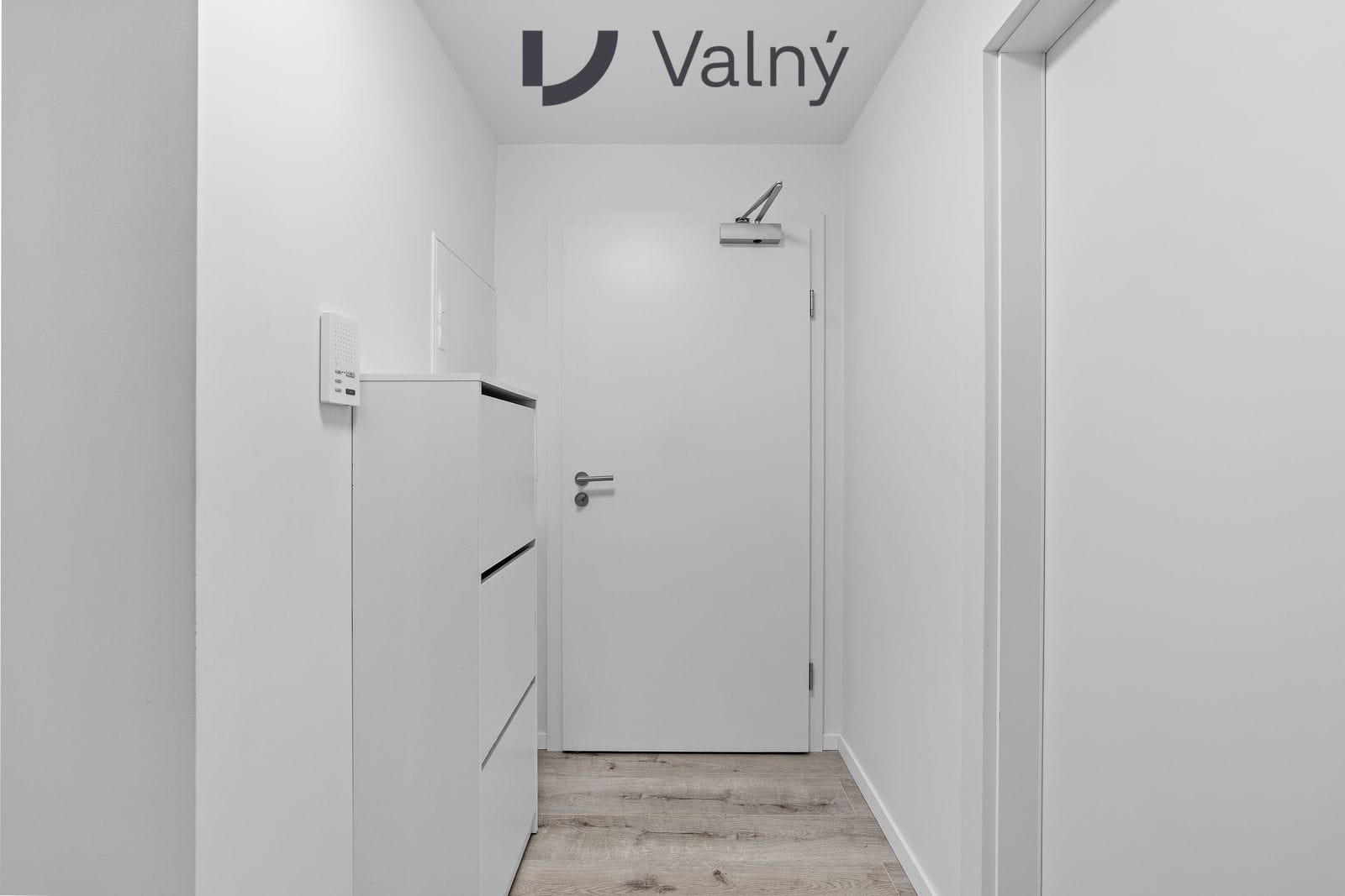 Forstofa með harðparket á gólfi.