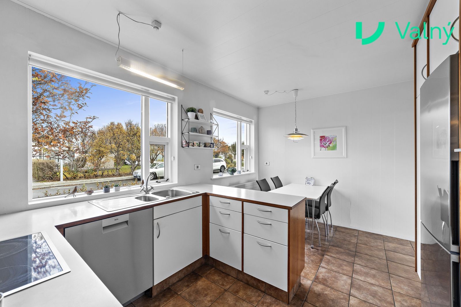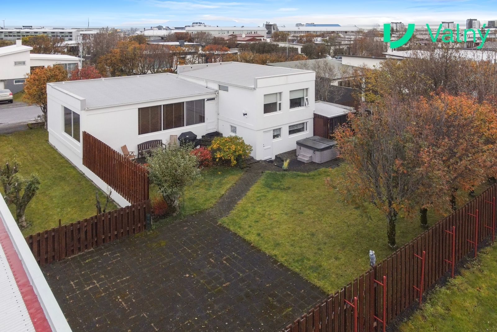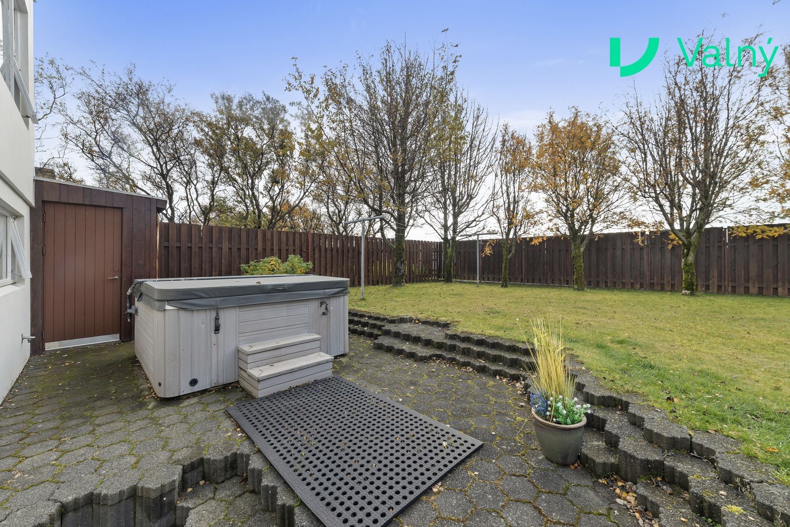 Háaleiti 31, 230 ReykjanesbærVel skipulagt sex herbergja einbýlishús á vinsælum og rólegum stað í Keflavík. Um er að ræða fjögur svefnherbergi, rúmgott alrými og þvottahús, innbyggðan bílskúr og stóra lóð með hellulagðri verönd og heitum potti. Snjóbræðsla er í innkeyrslu og stétt.
