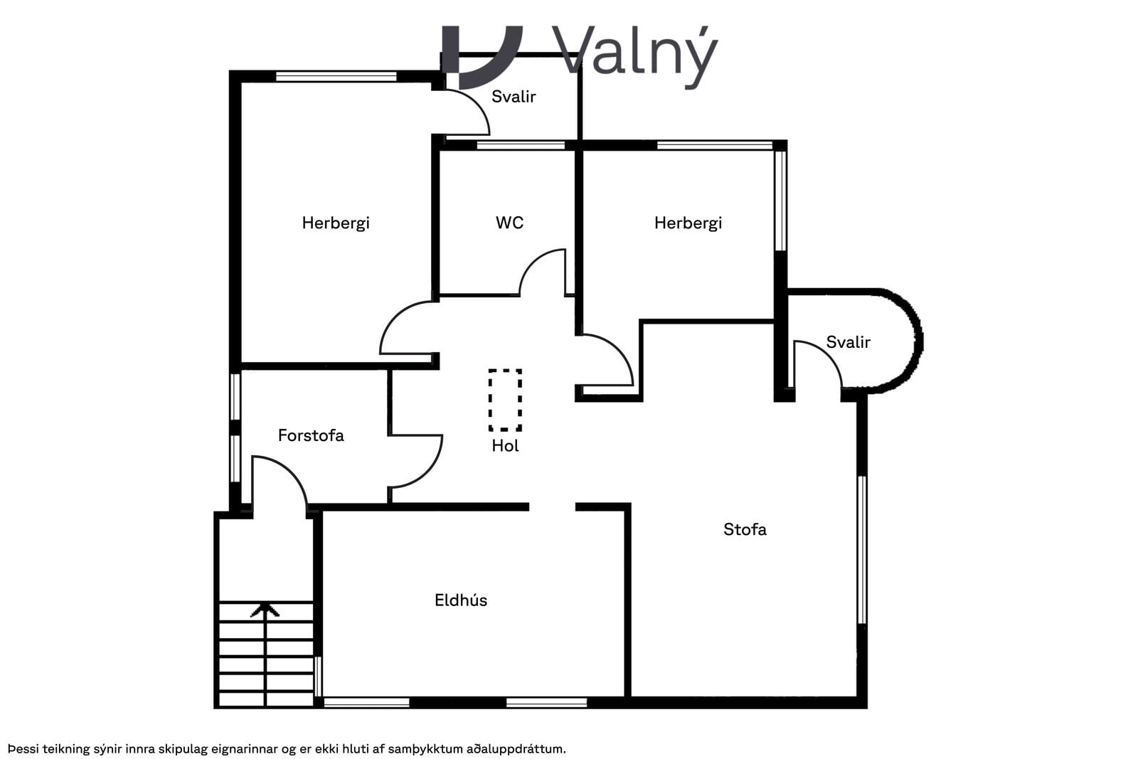 Samþykktir uppdrættir eru ekki í samræmi við innra skipulag hússins í dag.