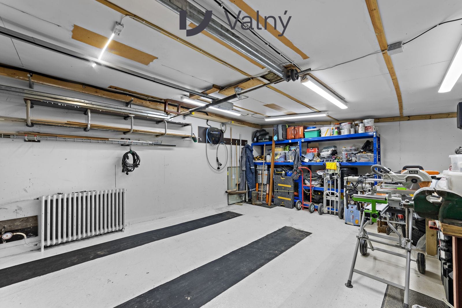 Bílskúr er 31,4 m² að stærð. Málað gólf. Bílskúrshurð með rafmagsopnara. Upprunalegur pottaofn.