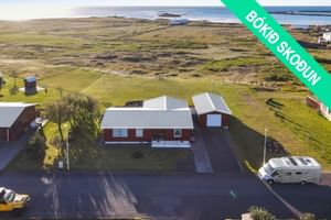 Bílskúr hefur hita og rafmagn, flísalagt gólf og bílskúrshurðaropnara.