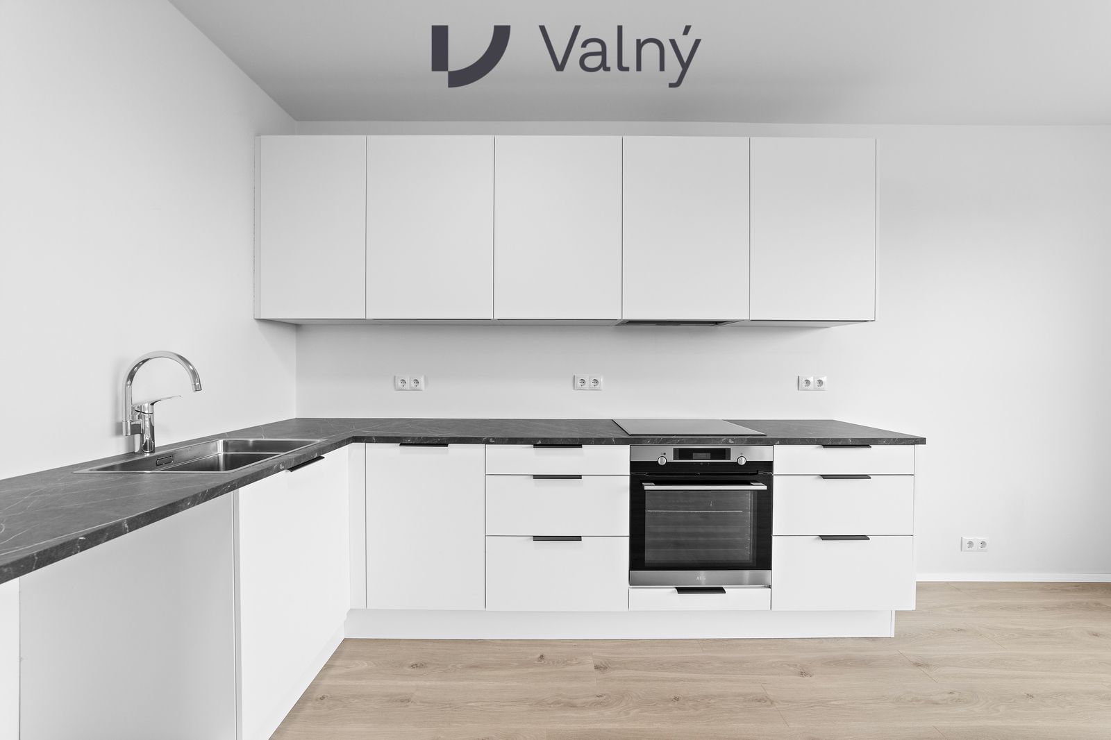 Eldhús samkvæmt teikningu, skúffur með mjúklokun. Tæki: bakaraofn, helluborð og háfur með kolasíu frá AEG eða sambærilegu. Borðplata úr plastefni. Seljandi áskilur sér rétt til efnis- og litabreytinga á framkvæmdatíma.