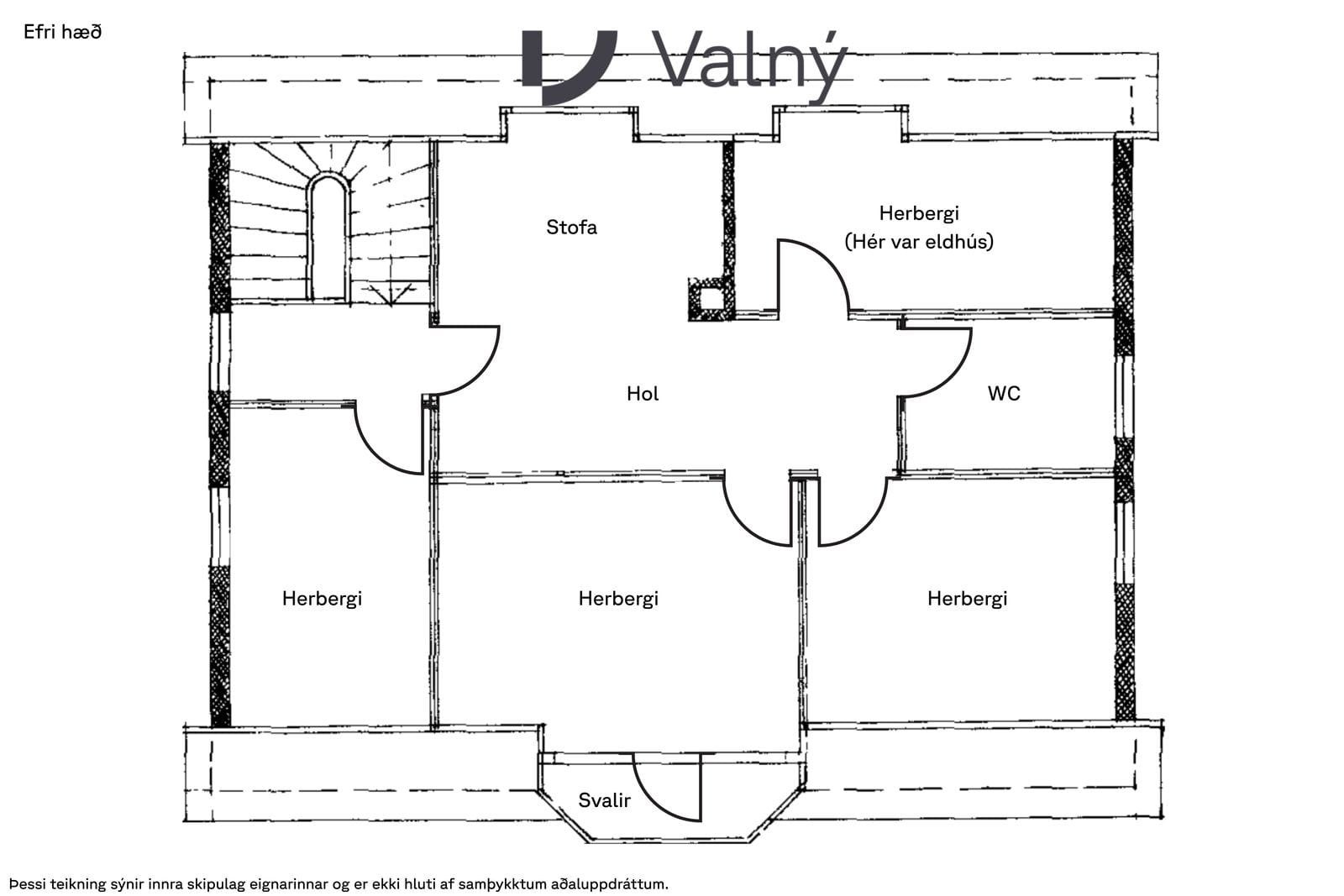 Þar sem efri hæðin er að hluta til undir súð eru nýtanlegir fermetrar fleiri en skráðir fermetrar. Einnig er möguleiki að nýta efri hæð sem auka íbúð, þar var áður eldhús í eitt af herbergjunum.Bílskúr er 34,4 m² að stærð. Hefur bæði hita og rafmagn.