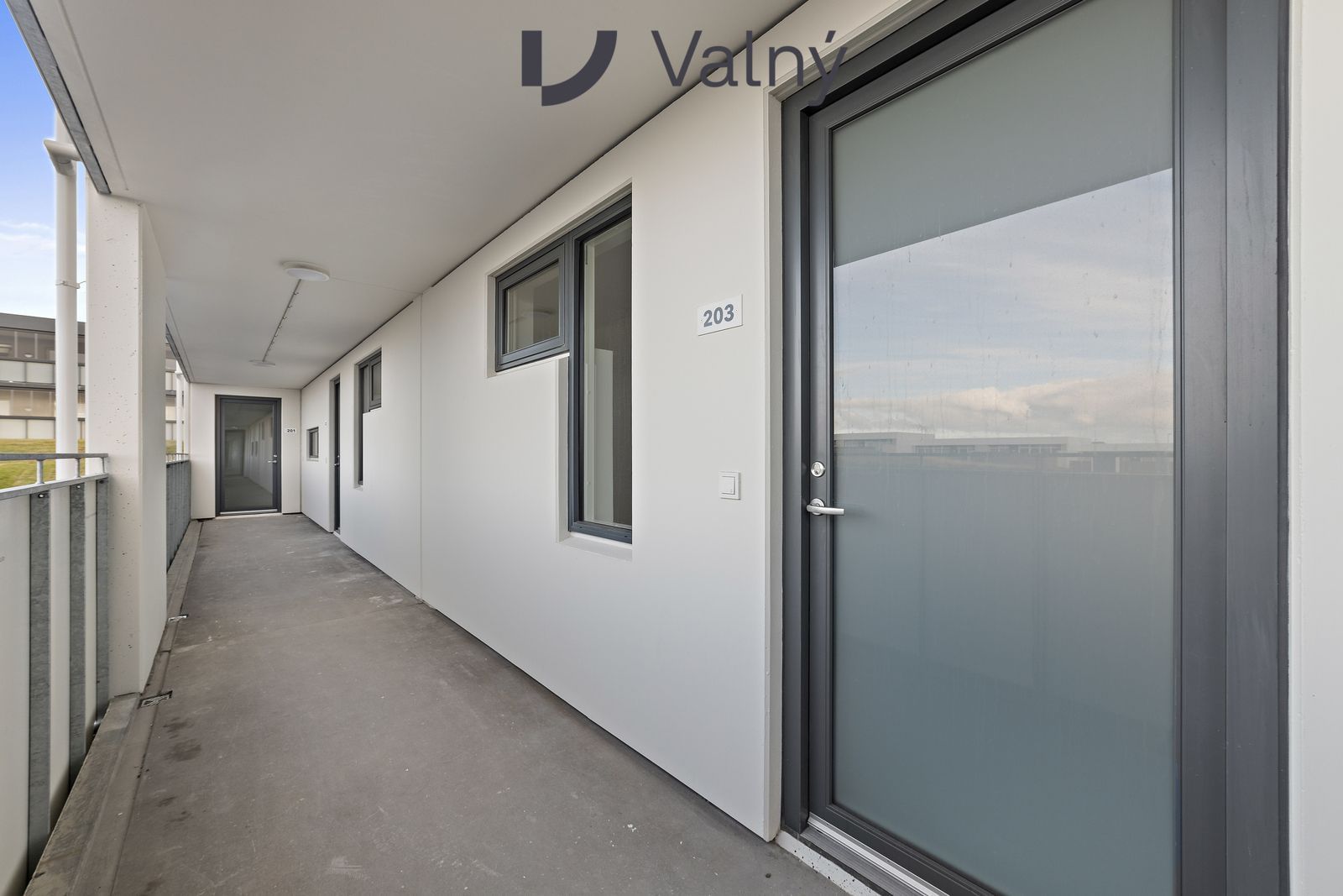 Lóð, aðkoma og sameign:Bílastæði eru malbikuð og stéttar hellulagðar að húsinu. Stéttar og stæði fatlaðra eru með snjóbræðslu og lóð er að öðru leyti með grasi. Samtals eru 31 malbikuð bílastæði á lóðinni, þar af tvö fyrir hreyfihamlaða. Lagnaleiðir fyrir rafhleðslustöðvar eru lagðar að stæðum. Flísalagt anddyri með póstkössum. Teppi á stigum og stigapöllum. Á jarðhæð/kjallara er sameign með máluðu gólfi,