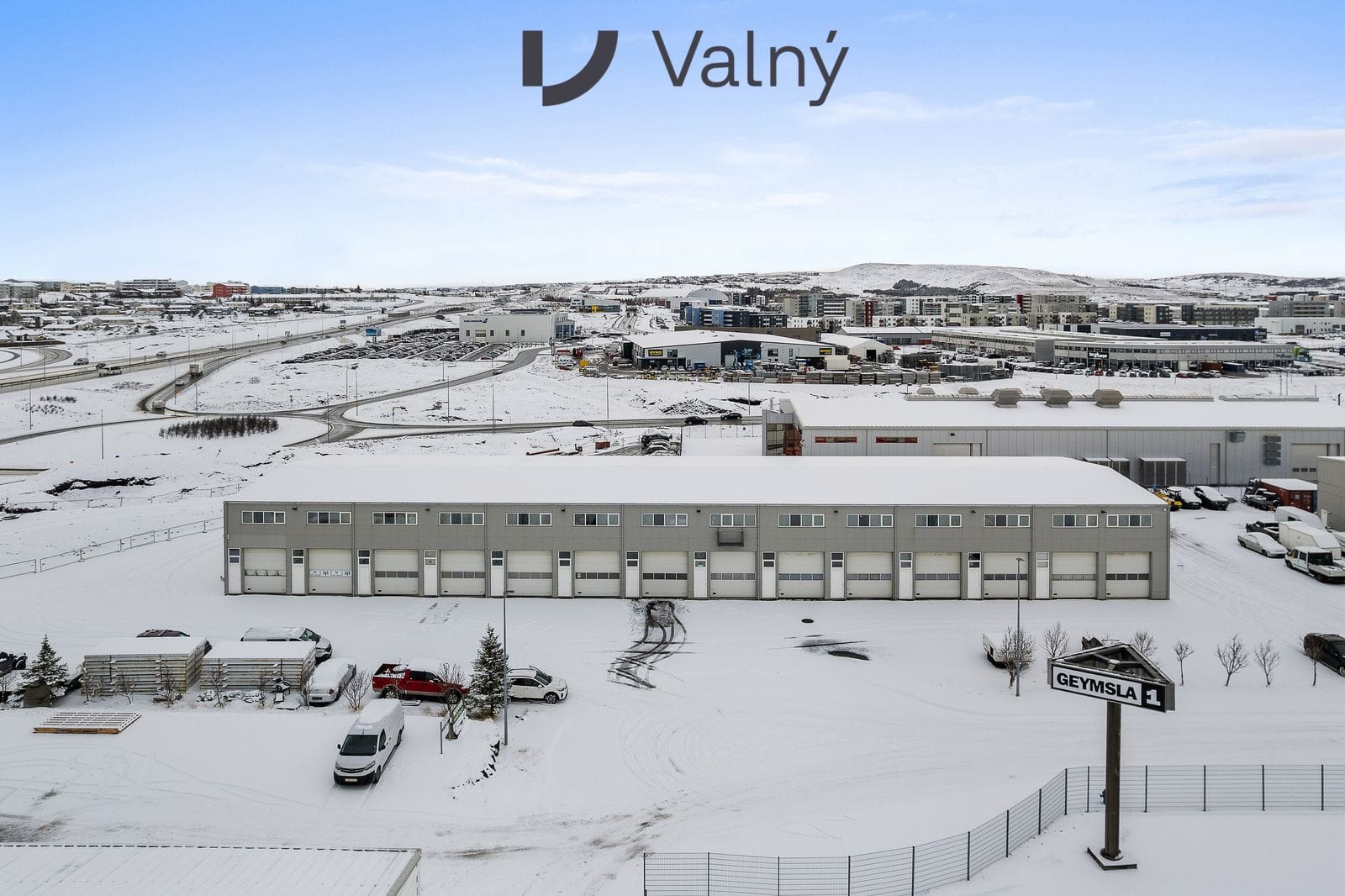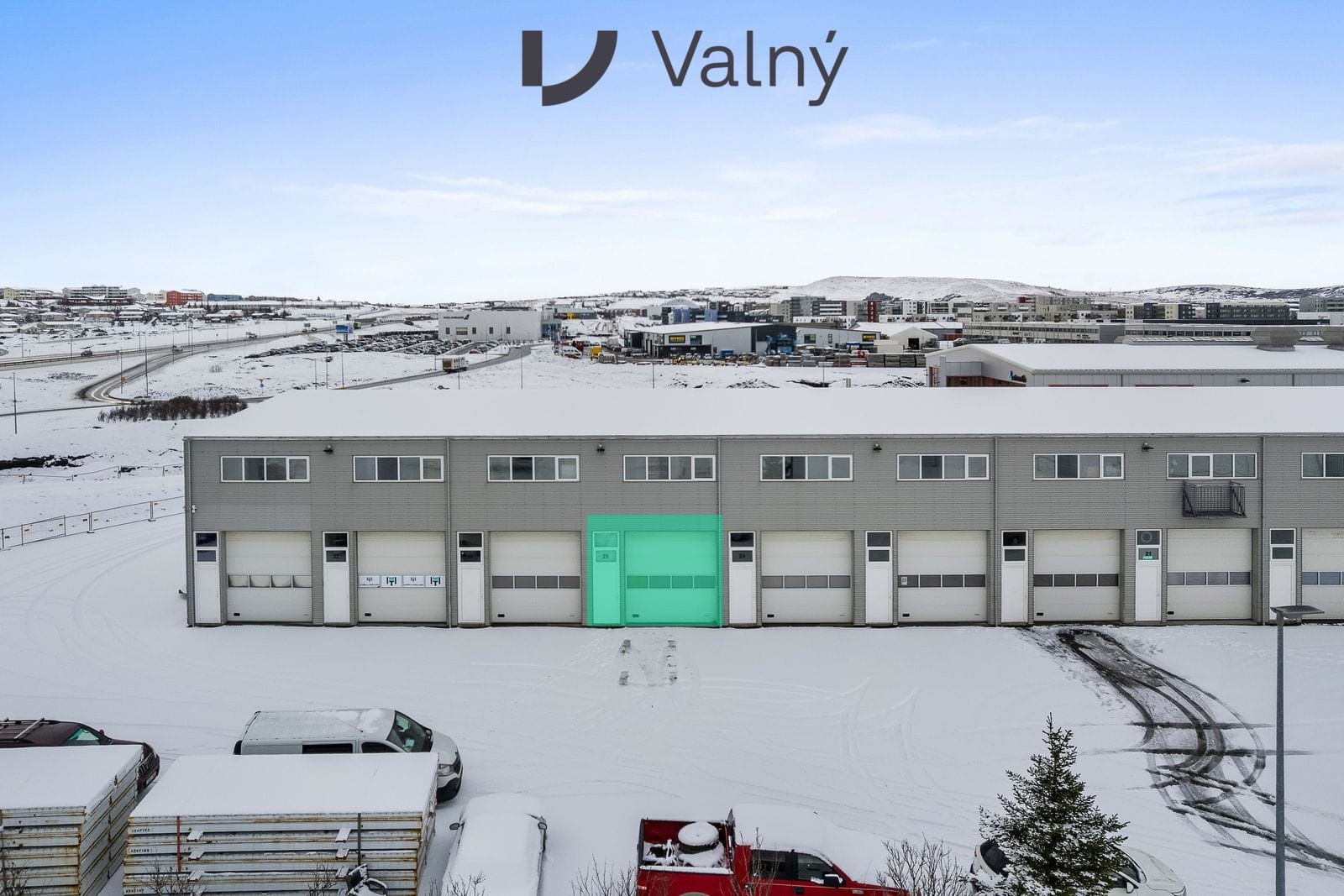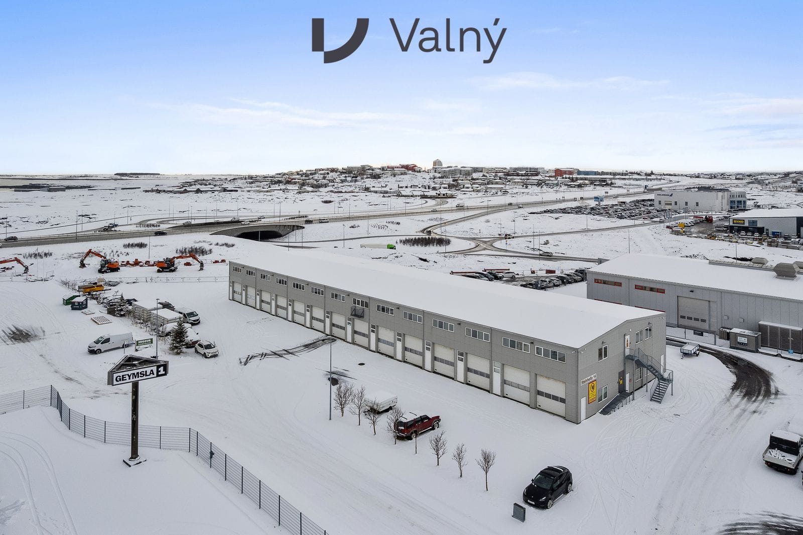Lýsing og skipulag eignar: Innst í bilinu er opið geymsluloft sem ekki er skráð í fermetrafjölda eignarinnar. Lofthæð í húsnæðinu er um 3,9 m og innkeyrsluhurð um 3,5 m á hæð og 3,4 m á breidd. Gönguhurð er til hliðar við innkeyrsluhurð. Innanmál bilsins eru um 4,82 m á breidd og 9,30 m á dýpt. Innst í bilinu er afstúkuð snyrting með salerni og vaski og flóttaleið út á sameiginlegan gang. Húsnæðið er rúmgóður salur með aukinni lofthæð og millilofti og eru hillur til staðar í rýminu. Sér rafmagn og hiti eru í bilinu og er ekki virðisaukaskattskvöð á iðnaðarbilinu. Húsfélag er virkt og gilda skýrar reglur um umgengni á sameiginlegri lóð.