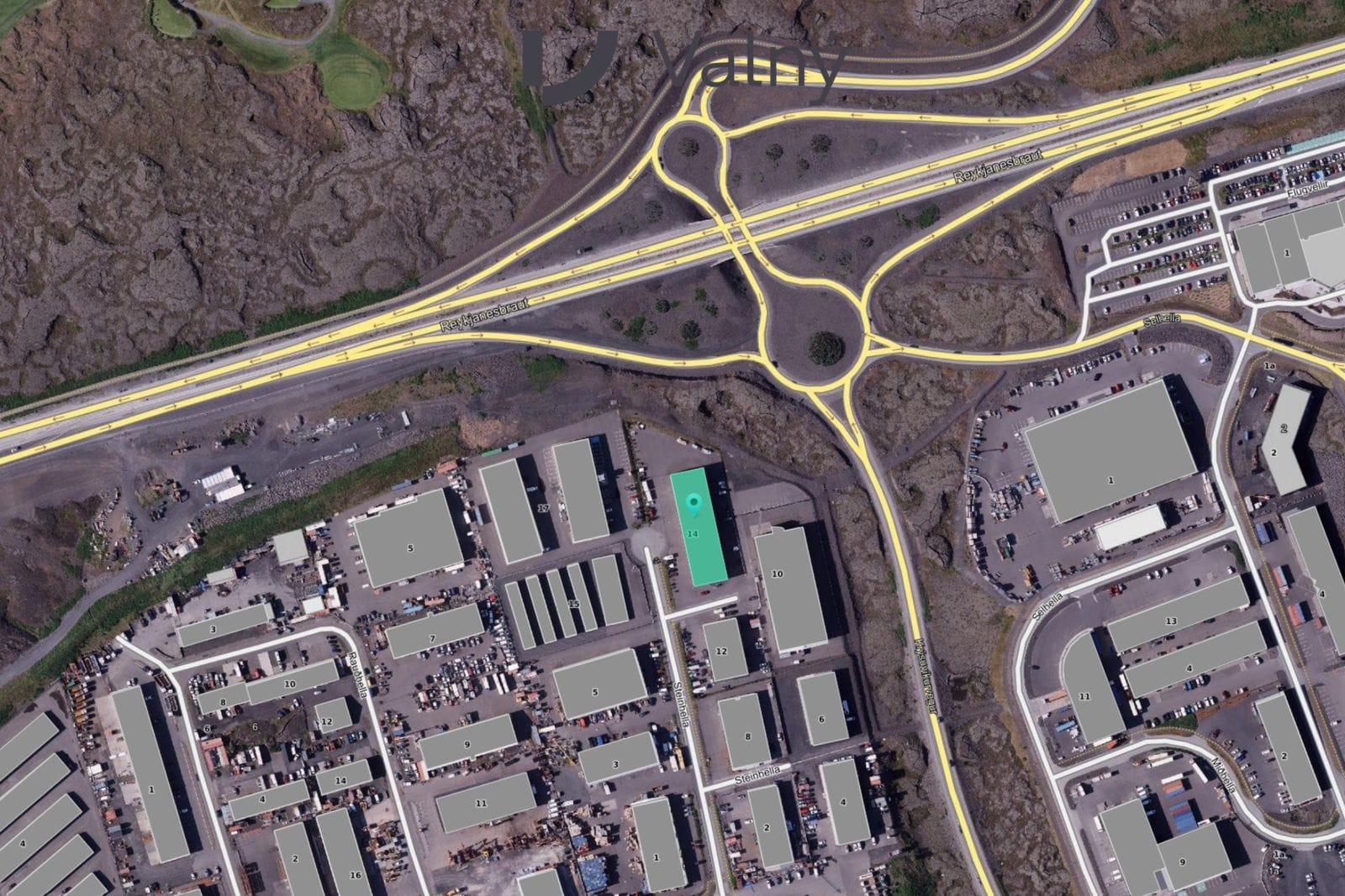 Steinhella 14 bil 25, 221 Hafnarfjörður Rúmgott iðnaðarbil með um 3,9 m lofthæð, innkeyrsluhurð og geymsluloft. Afstúkuð snyrting er í bilinu og flóttaleið á sameiginlegan gang. Hentar vel fyrir lager, verkstæði eða létta iðnaðarstarfsemi.