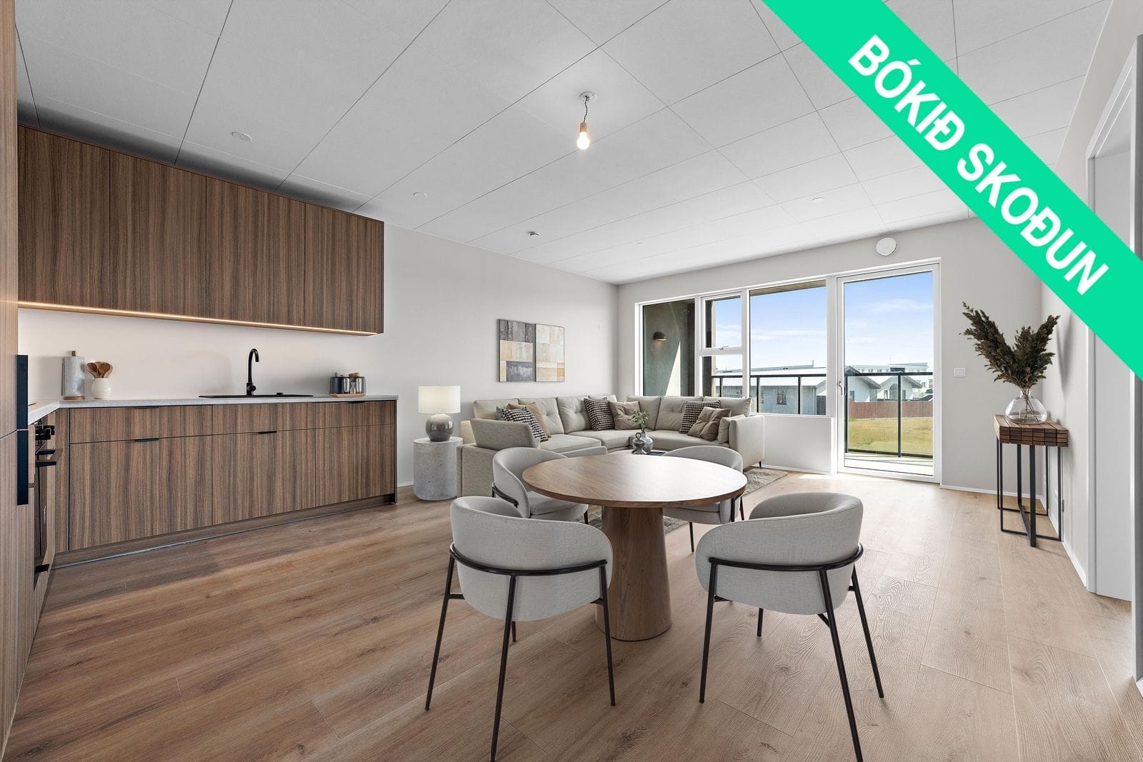 Tjarnabraut 2, íbúð 208, 260 ReykjanesbærGlæsileg og vel skipulögð fjögurra herbergja íbúð á annarri hæð í nýju 23 íbúða lyftuhúsi á vinsælum stað í Innri Njarðvík. Íbúðin skilast fullbúin með sérsmíðuðum innréttingum frá Parka, innbyggðum raftækjum frá Electrolux, gólfhita og gólfefnum. Á lóðinni verða tvær uppsettar hleðslustöðvar fyrir rafbíla auk þess sem lagnir fyrir rafhleðslustöðvar verða lagðar í öll stæði við húsið.