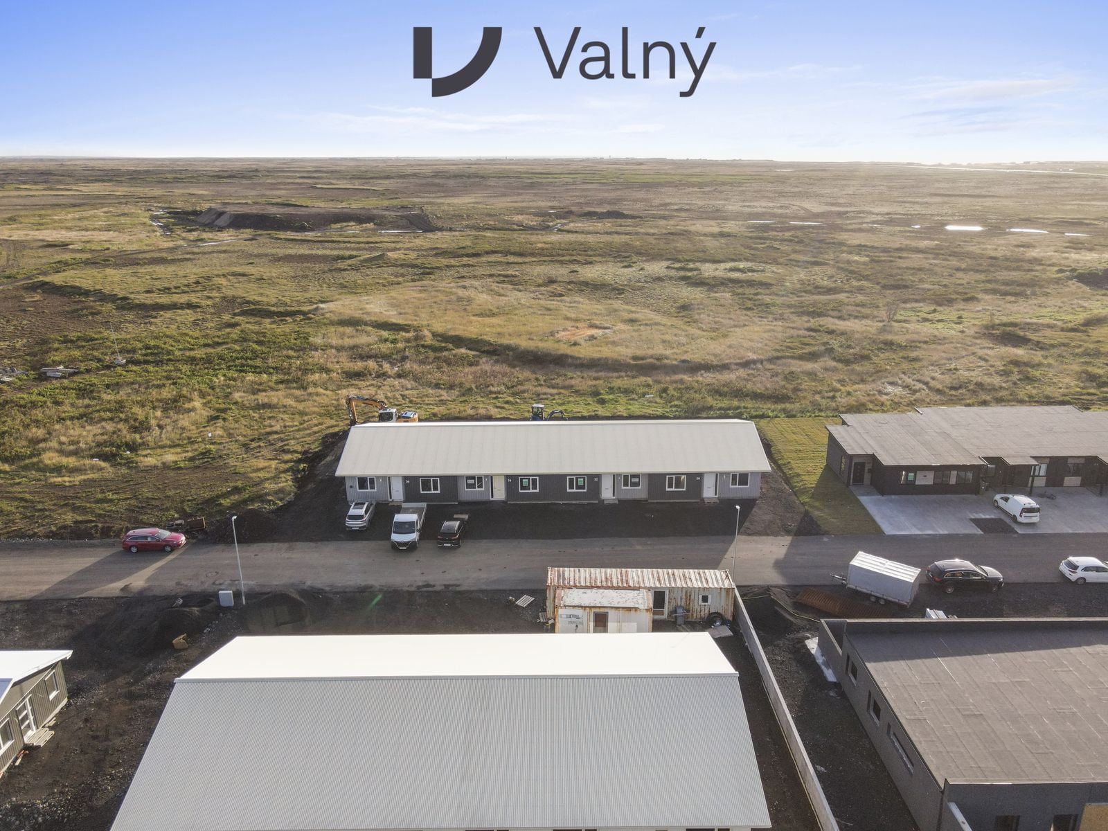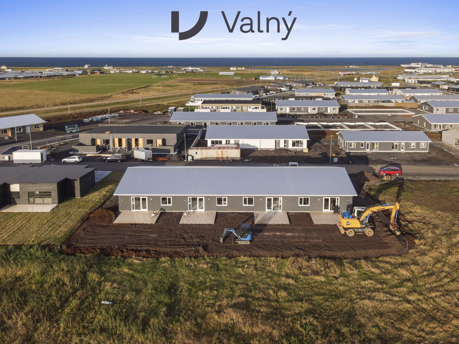 Nýtt raðhúð í nýju og ört vaxandi hverfi í Garði. Eignin er vel skipulögð með tveimur rúmgóðum svefnherbergjum, baðherbergi og geymslu, rúmgóðri stofu og borðstofu í björtu og opnu alrými ásamt glæsilegu eldhúsi með vandaðri L-laga innréttingu frá HTH og tækjum frá AEG. Eignin skilast með timburklæddum sólpalli. Lóðin skilast snyrtilega frágengin með tyrfingu, malbikuðu bílaplani og hellulagðri stétt með snjóbræðslukerfi. Gólfhiti er í öllum rýmum.