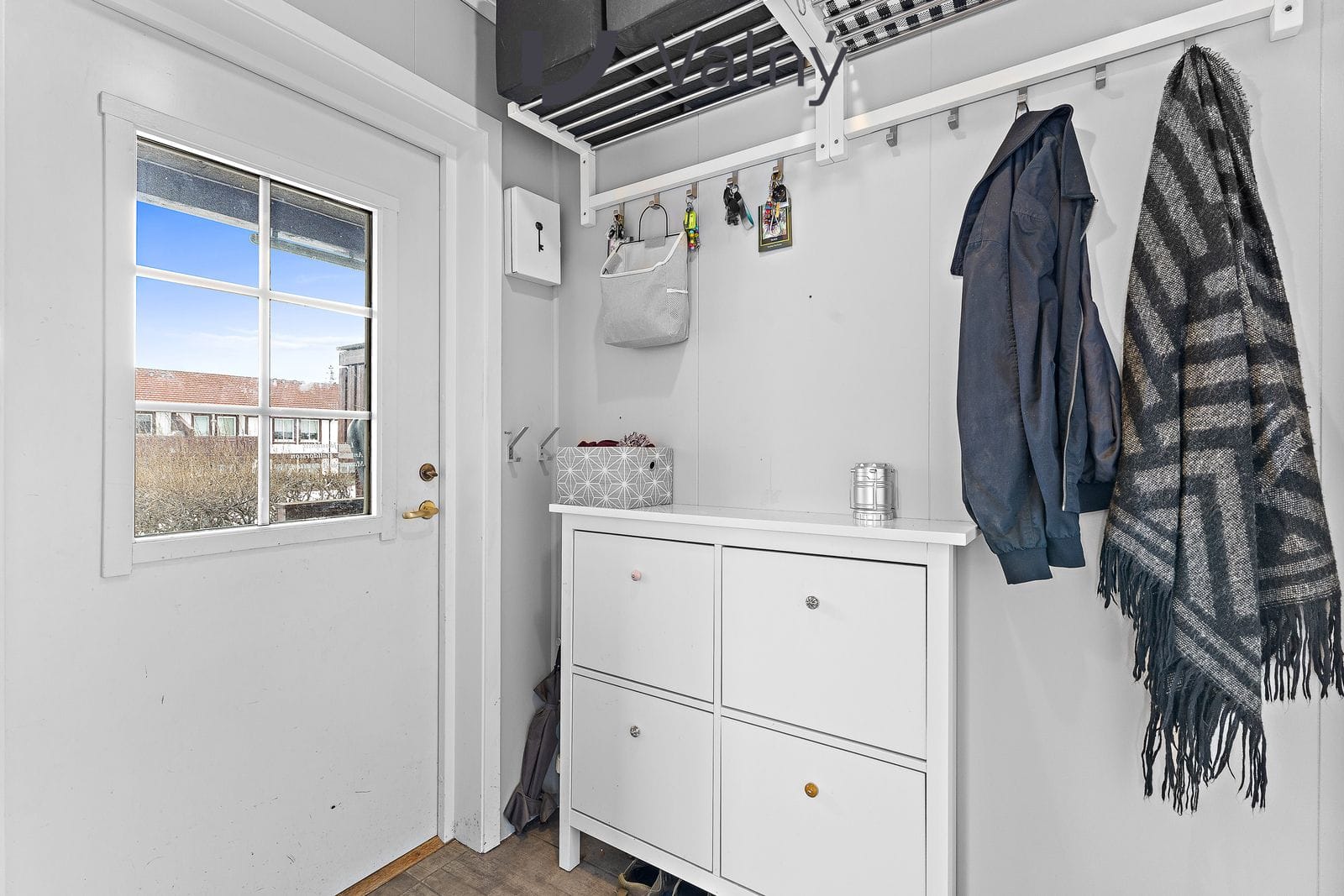 Útigeymsla er við inngang íbúðar, óeinangruð með rafmagni. Við hlið hennar er sameiginleg hjóla- og vagnageymsla.